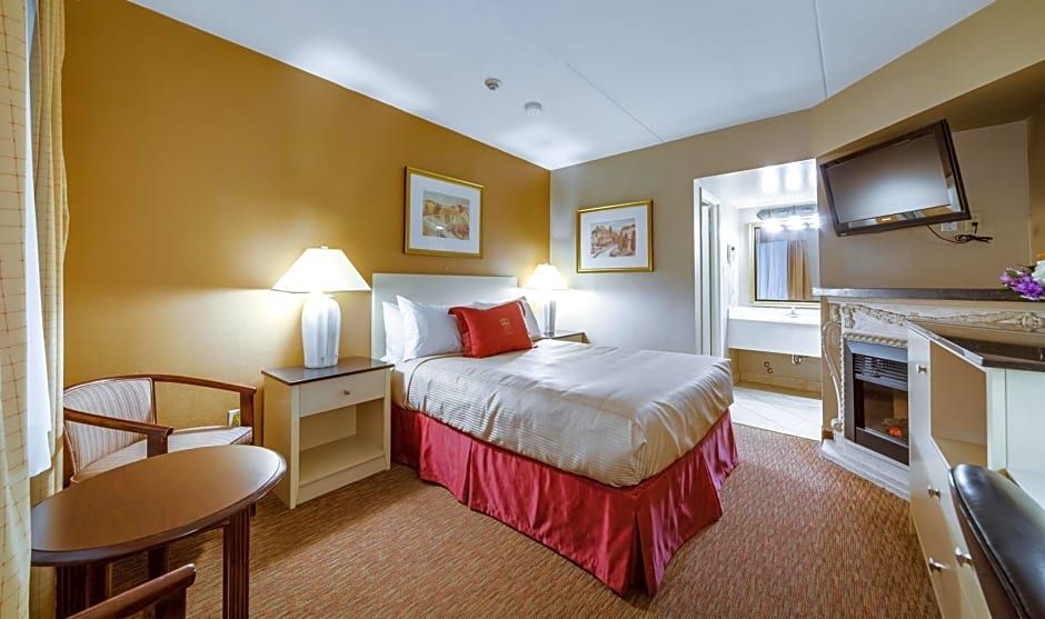 This suite features a fireplace. This suite features 1 living room, 1 separate bedroom and 1 bathroom with a shower and free toiletries. The suite has carpeted floors, a seating area with a flat-screen TV with cable channels, air conditioning, a tea and coffee maker, as well as a safe deposit box. The unit has 3 beds.
